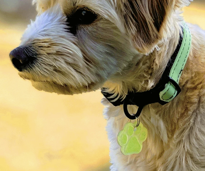 반려견을 위한 야광 태그 입니다. 리드줄이나 래쉬에 걸어 사용합니다.