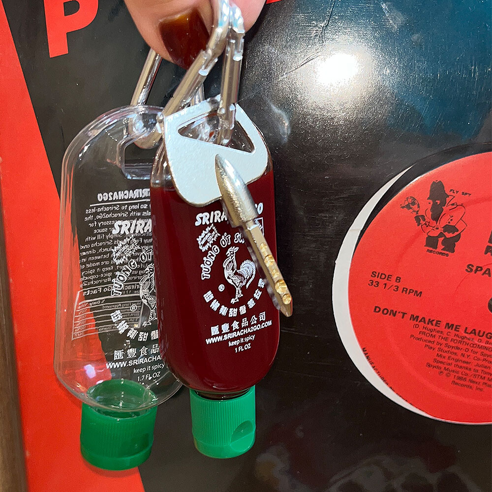 - Sriracha keychain you can confidently and conveniently use on-the-go.