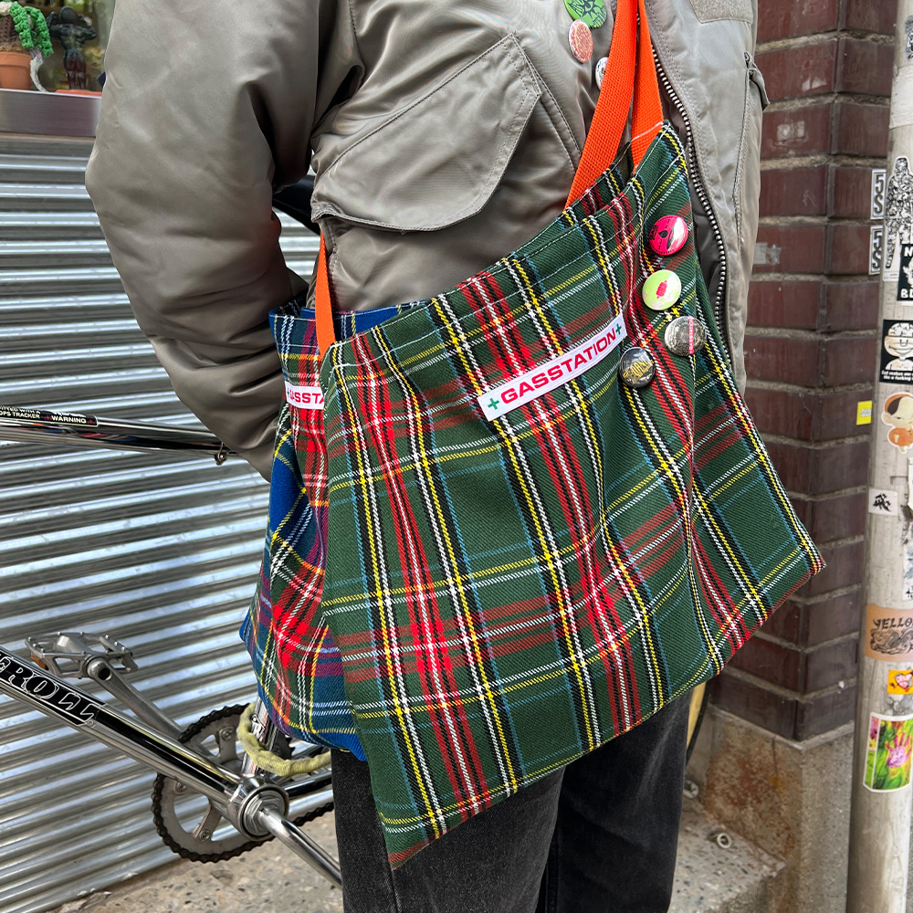 [GASSTATION] Plaid Tote Bag (Green)