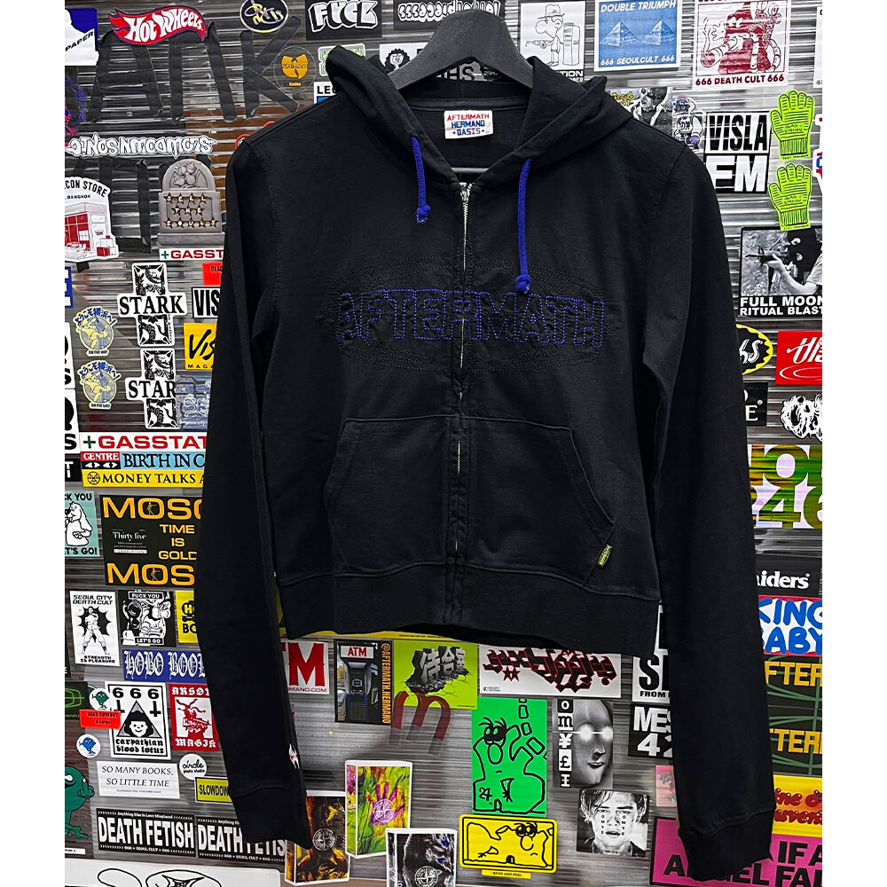 [AFTERMATH] W Contrast Stitch Zip Hoodie (Black)
