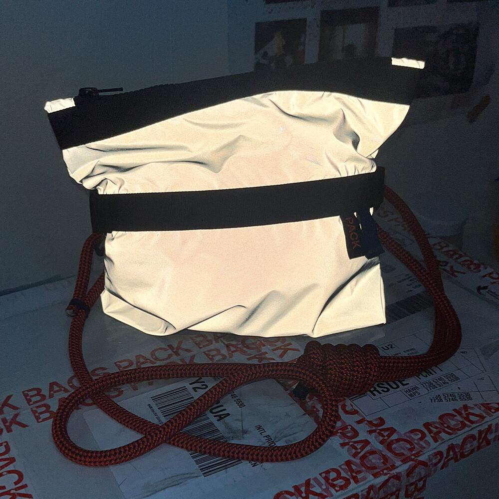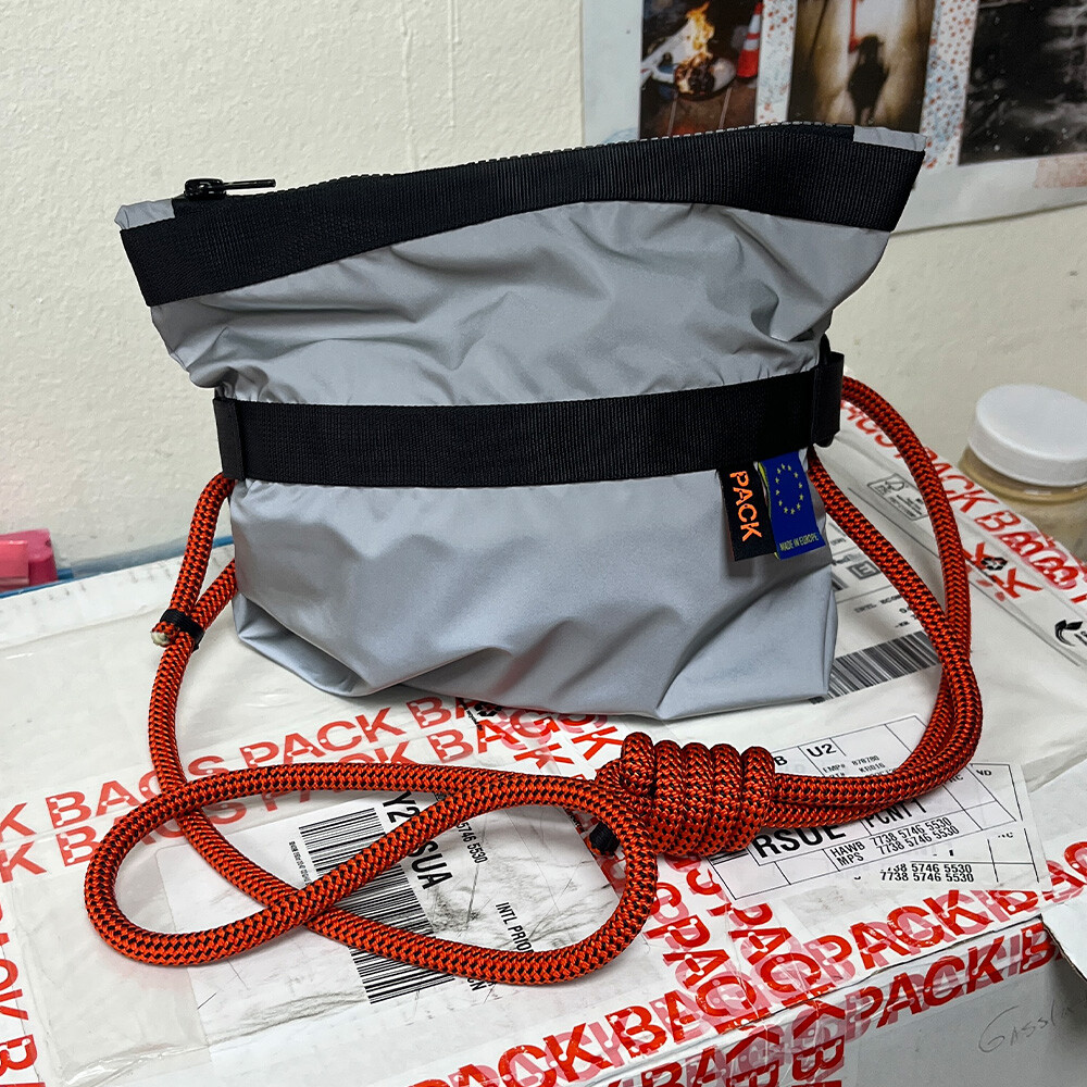 [PACKBAGS] Fold Sling Bag - Silver Reflective / Fluorine Red Strap