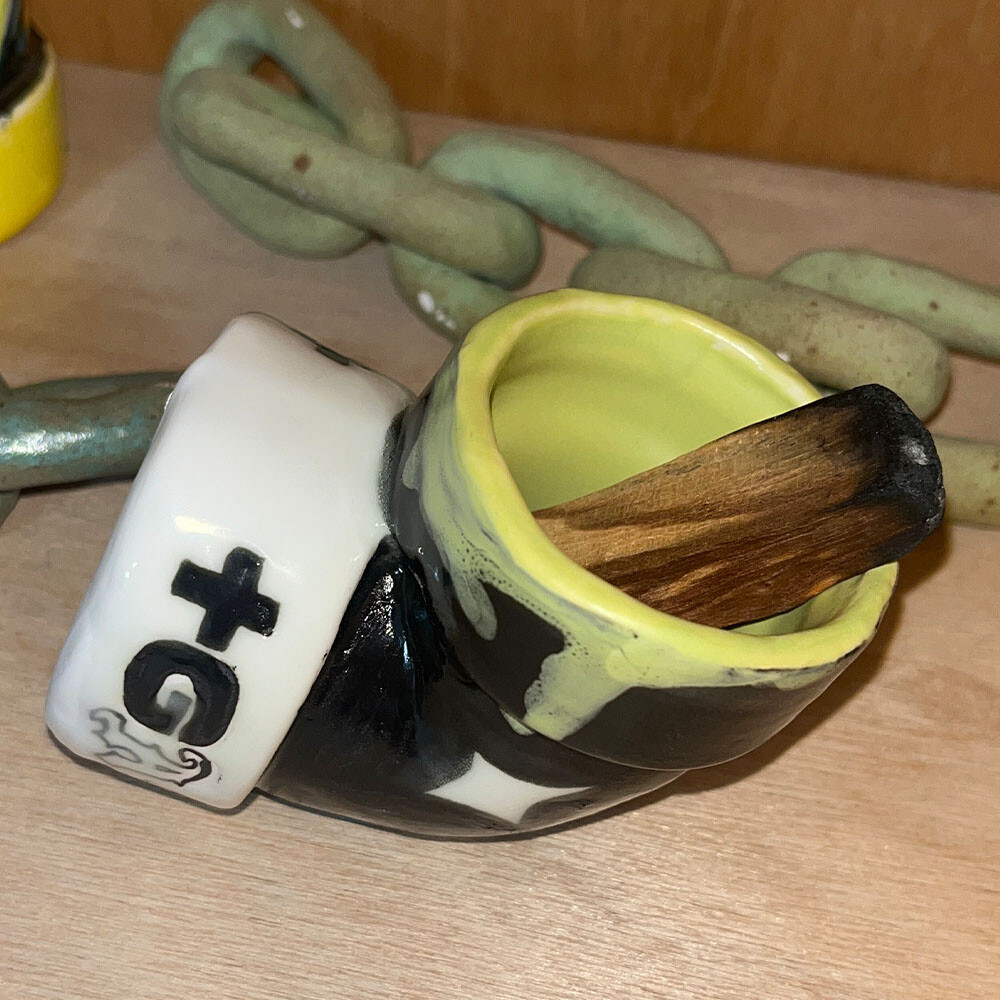 파이프 안쪽에 콘 인센스나 팔로산토 스틱을 넣고 태워줍니다.
